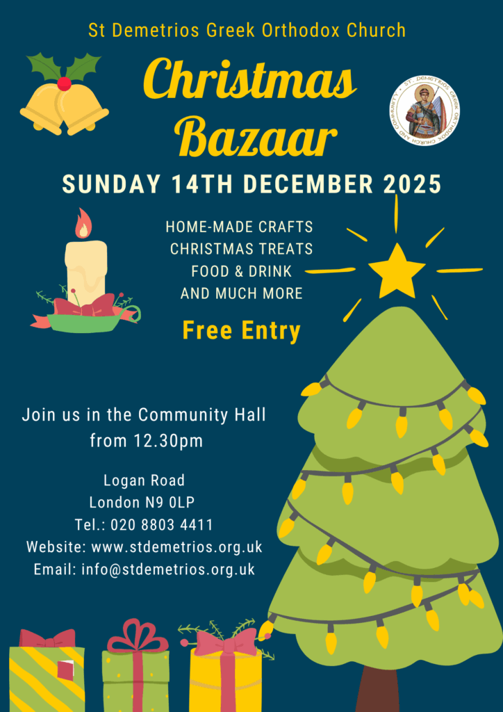 Three course meal (Kleftiko or Chicken) and Live Greek Music Admission: £30 RSVP: info@stdemetrios.org.uk or 02088034411