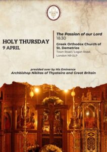 Holy Thursday evening – The Passion of the Lord presided over by His Eminence Archbishop Nikitas of Thyateira & GB